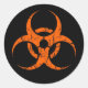 Scratched Orange Biohazard Symbol on Black Classic Round Sticker