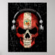 This unique design by artist Jeff Bartels features a dark Dj skull painted with the flag of Peru. Metallic headphones sit on top of the old skull giving it the look of a music Dj. Large cracks snake across the bone which gives the skull an old and broken look. The background is covered in scratches and scuffs that can be customised to any colour you like and give the design an aged vintage look. This stylish Dj skull design is a great way to show off your love of music and Peruvian pride.