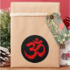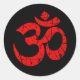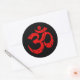 Scratched Red Yoga Om Symbol on Black Classic Round Sticker