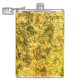 Scratches on scratches on a lightly spotted ochre hip flask