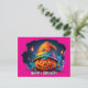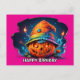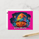 scray jackolantern with birthday hat pyschedelic holiday postcard