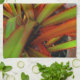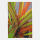 The young, green and orange tropical plant, in the original photograph by ZoeSPEAK on this Kitchen Towel, is called a screw pine. It is actually a distant relative of palm trees, called "screw pine" because of the spiralling way it grows, and the fruits that look like pine cones.