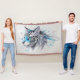 A quality printed throw has its advantages. This is a much finer weave throw than its loopier cousins, and though lighter, it is worth the investment for custom room accessorizing. The back is much prettier than the typical brown, and the fringe on the long sides very vivid, the selvage nicely done. Before photographing, I washed the throw in cold water, delicate, with a thicker woven throw the same size. On tumble dry low, this throw was dry in half the time as the other. This is a very practical quality if you use throws for furniture covers or to wrap up in frequently. The sleekness of the fabric makes it a great layer for accenting or protecting without the feeling of sitting on too much stuff. Perfect for napping or when you feel a light chill coming on. The color printing is beautiful and on this fabric, matched the design and color of my Photoshop image. This is an advantage for blending room fabrics and colors. The fringe on the short sides prints the colors from the design image and therefore varies from the side fringe. I streaked a white fractal line through the plaid pattern to give the illusion of weaving. This printed as crisp as an illusory thread, and put some white in the short side fringe, showing another advantage of print vs loomed- for artistic purposes, line lines, detail, and color integrity can be planned and preserved. My loomed throws have color limitations and more of a needlepoint texture. Print throws reproduce an exact image. The throw felt a little stiff straight out of the package, but this went away in the first delicate wash. Of course I searched the wash water for ink or bleeding and there was none.
