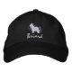 Modern Briard hat has a white dog silhouette in front of a purple scribble, and the breed name scripted below. Excellent pet lover embroidery!