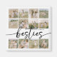 Are you lucky enough to have a best friend - Then show them just how much they mean to you with this stylish 'Best Friends' photo magnet. Featuring 12 square photographs of your choice, which you can easily download from your phone or computer, this magnet also includes the word 'bestie' in elegant calligraphy script on a soft white background. The best part, you can customize the background color and add yours and your bestie's name for a truly personalized touch. Whether it's for a birthday, Christmas, or just because, this magnet makes a thoughtful and unforgettable gift for your best friend. They are priceless, after all!