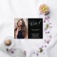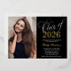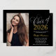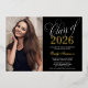 Elegant script font photo graduation party invitations to celebrate your big day. Classic school colours of gold, white and black. A great choice for a high school senior graduation, college graduation or graduation party.
