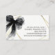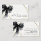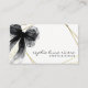 Create a lasting impression with this elegant script business card featuring a soft black watercolor bow and modern gold geometric accents. Designed for women in business who want a refined, stylish, and luxurious brand identity. Perfect for event planners, wedding professionals, beauty entrepreneurs, and creative business owners, this card blends minimalist design with feminine sophistication. Fully customisable with your name, business details, and contact information, making it easy to create a polished and professional look. ✨ Ideal for: • Event planners & wedding coordinators • Hair stylists & makeup artists • Boutique owners • Creative entrepreneurs ✨ Design features: • Handwritten-style script name font • Elegant black sheer bow artwork • Modern gold geometric lines • Clean, high-end layout Elevate your branding with a business card that feels both modern and timeless.