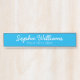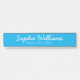Stylish Desk Nameplate with script white fonts and title on a sky blue custom colour background. Ready for an easy online personalisation.