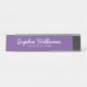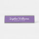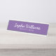 Stylish Girly Desk Nameplate with script white fonts on a purple background.