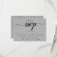 Elegant cursive script handwritten style calligraphy grey kraft style paper rustic wedding RSVP card. The back includes a black and white geometric pattern on grey kraft look paper.