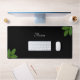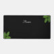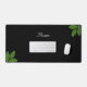 Script Calligraphy & Laurel Green Leaves on Black Desk Mat