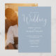 Script Calligraphy Photo Dusty Blue Wedding Invitation