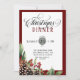 Christmas is a script design element and the circular date frame have two green shades from the back side Gingham pattern. The shapes makes this invitation organic and flowing.
