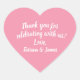 These thank you stickers feature a heart. Font choice and colour of text is also customisable to fit your style.