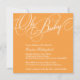 Bright orange diagonal stripes are not to be missed on this baby shower invitation. The words "Oh Baby' stands out in an ornate script with customised invitation text below. Add extra text on the reverse or just delete it to leave the back blank. Available in alternate colours with matching products.
