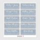 Easy to personalise, names and addresses / individual wedding address label stickers for guest invitations. These chic, modern and stylish wedding address labels feature your wedding guest names in white elegant handwritten script calligraphy on a dusty blue background. Simply add your individual wedding guest names and address. Exclusively designed for you by Happy Dolphin Studio.