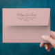 Chic, modern and simple wedding return address envelope with your names in off-black elegant handwritten script calligraphy on a dusty pink background. Simply add your names and address. Exclusively designed for you by Happy Dolphin Studio. If you need any help or matching products please contact us at through our store chat. We're happy to help you make your wedding the most beautiful day!