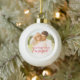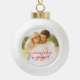 Script First Christmas Engaged Holiday Photo Ceramic Ball Christmas Ornament