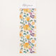 Plum, Golden Yellow, and Sage Green Floral Print Pattern Yoga Mat with custom Script Name or text. Backing is plain white but can be printed for a higher price.