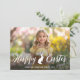 This personalizable photo template card is designed for Easter. “Happy Easter” appears in a lovely script font over your photo with Destei’s adorable bunny silhouette placed between the words for a subtle Easter touch. There’s a personalizable text area for a name and year with a subtle overlay beneath the text to make it stand out more. On the back, the bunny silhouette creates a playful pattern over a yellow background which can be customized to match your photo’s color scheme. A cute, stylish and personalized way to send Easter greetings.