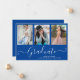 Script Graduate 3 Photo Collage Blue Graduation Announcement