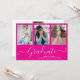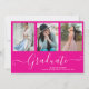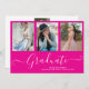 White Script Graduate 4 Photo Collage Hot Pink Graduation Invitation. For further customisation, please click the "Customise it" button and use our design tool to modify this template.