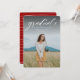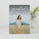 A simple classic script "graduate" in white accentuates a single vertical photo of your grad. This graduation announcement works for both college or high school graduates and is simple enough to let your photo shine. It's a timeless design and also features a striped backer with a customisable colour (default is a dark red). The words are at the top of the photo but the design is also available with the words at the bottom.