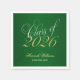Elegant script font class of 2025 graduation paper napkins. Shown in gold, white and green. Perfect for a high school senior graduation, college graduation or graduation party! Designs are flat printed illustrations/graphics - NOT ACTUAL GOLD FOIL.