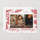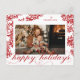This elegant holiday photo postcard features a hand drawn border with red berries and winter foliage and a flourished script greeting reading "happy holidays" accenting a single customisable photo for a classic traditional holiday feel. The back is set up as a postcard for easy mailing.