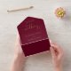 All in one burgundy and gold wedding invitation featuring elegant hearts script typography and monogram initials. The invitation includes a perforated RSVP card with your personalised wedding QR code. Designed by Thisisnotme©