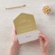 All in one gold wedding invitation featuring elegant hearts script typography and monogram initials. The invitation includes a perforated RSVP card that can be individually addressed or left blank for you to handwrite your guest's address details. Designed by Thisisnotme©