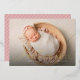 This one-photo birth announcement features an elegant script "hello" beside a name or nickname. It also includes room for the baby's name and other details at the bottom of a horizontal photo. The pink colour on the backer makes it perfect for announcing a sweet baby girl and to coordinate with newborn photos. Other colours also available.