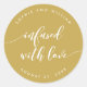 Wedding sticker featuring the words "Infused with Love" in a relax cursive script in white against an editable background colour (click customise to access).