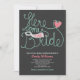 Customise this modern whimsical Bridal Shower Invitation with hand lettering text Here Comes the Bride in mint colour on a dark grey background.