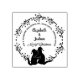 This "Merry Christmas" rubber stamp features a wreath with a couple of cats, custom names and address.