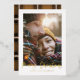 foil stylish script merry christmas with coordinating mustard and black check tartan backer design. Space for a single photo design. A modern take on a traditional christmas.