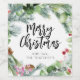 Watercolor greenery with script "Merry Christmas" personalised with family name wine labels makes a great gift.