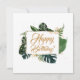 Script Modern Green Leaves Happy Birthday Card