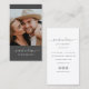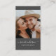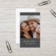 Modern and professional photography business cards featuring your photo with trendy minimalist script typography on a charcoal grey backdrop. Add your contact information to the back. Includes three social media icons and a field for your username.