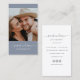 Modern and professional photography business cards featuring your photo with trendy minimalist script typographyon a dusty blue backdrop. Add your contact information to the back. Includes three social media icons and a field for your username.