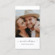 Modern and professional photography business cards featuring your photo with trendy minimalist script typography. Add your contact information as well as your custom QR code to the back. Includes three social media icons and a field for your username.