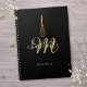 An elegant black and gold script monogram name recipe notebook featuring a chic gold whisk. Personalise with your initial and name to create a beautiful elegant gift. Perfect for home and business use. Designed by Thisisnotme©