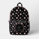 Script Monogram Custom Name Black Polka Dot Circle Printed Backpack.