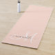 Personalised monogrammed stylish pink peach yoga mat with a script font design. Trendy typographic style.