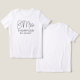 Announce your new title in style with this elegant "Mrs." tee featuring flowing hand-lettered script calligraphy, a customisable last name, and an established date. The chic minimalist design in black on white makes it a beautiful choice for honeymoon travel, bridal events, or everyday newlywed wear. Edit the name and date to personalise.