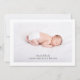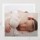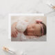 Modern baby photo birth announcement for girl or boy. Simply use this template to add your own custom photo on the front and back of the card; of your own sweet baby and personalise with baby's name in the elegant trendy script typography.