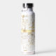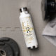 Script Name & Black Monogram, White & Gold Marble Water Bottle