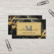 Script Name Monogram Black and Gold Marble Business Card