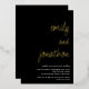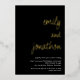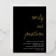 Glam Script Names QR Code Wedding Black Luxury. A fully customisable design with impressive real foil for your names in a choice of gold, rose gold or silver. Replace the sample QR code on the back with your own making this a convenient option for your guests to RSVP and see all the details without the need for separate RSVP and details cards. Minimalist informal style with handwritten style script for your names.