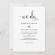 A modern and elegant script-only, "we do" wedding invitation featuring an elegant swash calligraphy announcing, "we do," with a classic small serif font for details giving it a minimalist, formal, black and white invitation look with a modern upgrade.